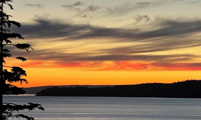 Enjoy spectacular ocean views at The Cottage at the Cove Studio Suite. You just might see Killer Whales, Humpback Whales, the odd Minke Whale, Dolphins, Porpoises, Sea Lions, and Sea Otters swimming by. There are also Bald Eagles, Deer and more that you can see right from the comfort of your room. Some of the most gorgeous sunsets ever are able to be seen from the oversize windows designed to capture the views of the ocean and mountains. The suite was completed in May 2024 and features high 8'3" ceilings throughout the unit. The cabinets are topped with luxurious quartz counters, residential fridge/freezer, stove, oven, microwave and all you need to bring in is your food and drink. If you don't feel like cooking the Killer Whale Cafe and the Saltery Pub offer great food and drinks and they are only a short walk from your room. The bathroom features an oversized shower with porcelain tiles and glass rolling shower door. The property and suite is tastefully decorated with the ocean in mind with nice touches like nautical pictures and ornaments, real used fish net floats, old weathered rope and old rough boards and logs from Telegraph Cove. There is a permanent queen bed and if you need additional bedding , we just added a sofa "Hide a Bed" for an extra couple adults or children. We are located a short walk from the Historic Telegraph Cove in the residential area, but far enough away to be very quiet and relaxing. It is close to many walking trails and a short drive to a few local lakes up in the mountains. There is a private barbecue area with a table and chairs for those evenings you want to take in the views and fresh air. The suite has free parking for your vehicle and also free wifi. You can stream on the large new flat screen TV. If you are looking for Bear, whale and nature watching we can connect you with the right people. If you are looking for world class fishing, whale watching and Grizzly Bear Watching, Telegraph Cove is where you want to be. We are the Gateway to the Broughton Archipelago, BC's largest marine park and the mountains offer some of the most incredible wildlife for your viewing pleasure. If you are looking to charter a private luxury cruise around the area or a fishing adventure we have a brand new 2825 Kingfisher boat loaded with amenities including a private bathroom with flush toilet, heated cabin, fridge, dinette area and all the latest in electronics and safety gear. We have binoculars on board and a high end non skid back deck for viewing the scenery and wildlife. The captain has over 40 years experience in the area and plans to be fully licensed for the 2025 season. We highly recommend you book a Tide Rip Grizzly Adventure Tour as well as Prince Of Whales, Whale watching. They are both first class companies that provide a memorable experience. Come join us at what is our favourite place on earth.