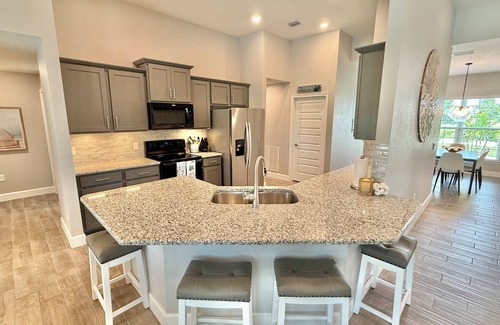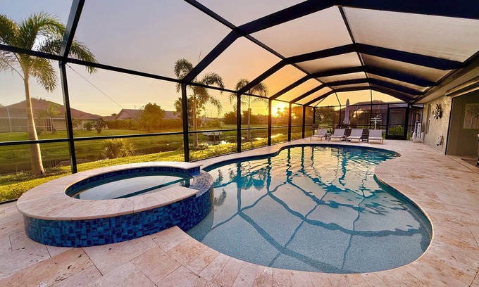 Start your day with coffee in the serene travertine lanai, take a dip in the large, heated saltwater pool and 6-person hot tub, or cast a line into the canal right from the backyard. Prefer a little adventure? Launch one of the provided kayaks and explore the waterway or challenge the family to a friendly game in the fully equipped flex & game room. You may even see some unique birds around the canal.