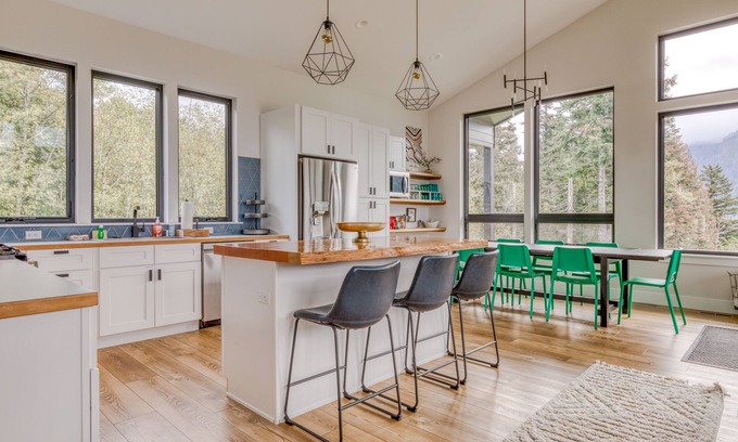 Relax at our peaceful home nestled on a 18-acre tree farm. Built in 2020, well appointed & designed for your dream vacation. Big comfy beds, spacious rooms, stylish design, a hot tub, oversized deck & views from every room make this home an oasis. Located near many of the gorge attractions you'll be close to waterfalls, hiking, biking, watersports, fishing, breweries & more. Or stay in & enjoy breathtaking views of the Columbia River, waterfalls & mountains. NEW WHOLE HOUSE AUTO BACKUP GENERATOR! *NO EVENTS/WEDDINGS