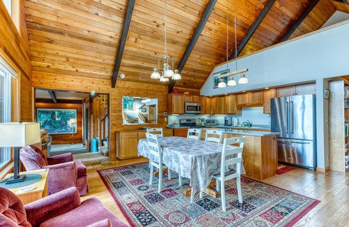Spend your days playing on the beach, sandboarding down dunes, surfing waves, and beachcombing for treasures. The closest beach access is just up Rhododendron Drive, at North Jetty. Or, drive south across the bridge and out South Jetty for less crowded sands also well suited for riding ATVs or sandboarding. The town of Florence is quaint but offers quality shopping, dining, and opportunities for fresh seafood. Have an unforgettable meal at the upscale Waterfront Depot, try something new at Spice, or buy some fresh catches at the Krab Kettle to cook up yourself! You'll be so close to the coastal forests in this house, there's no excuse not to explore - drive down Highway 101 to find beautiful hiking trails to the dunes, where you might also rent a dune buggy or take a guided tour at Sand Dunes Frontier, or rent a kayak to adventure on extensive Siltcoos Lake or Woahink Lake for a different perspective.