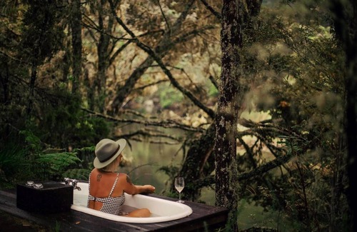 Once you've settled into your luxurious safari tent and taken in the beautiful views, discovered all the little details in our vintage styled kitchen and bathroom cabin, take a wander down to the riverbank where you'll find your own private and romantic outdoor caste iron bath perched overlooking the river, complete with hot running water, and shaded by ancient Pohutukawa trees. The ultimate in romance and relaxation!