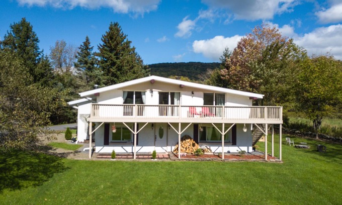 This fully renovated chalet is close to nearby Margaretville, Arkville and Phoenicia. Only 7 miles to Belleayre Ski Resort. Beautiful secluded property for peace and quiet with gorgeous pond and mountain views. This place is good for couples, skiers, family and friend getaways and families with kids. Also close to trails.