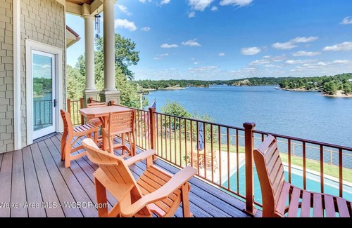 This gorgeous Smith Lake home is definitely one-of-a-kind!! This home features a spacious king size master suite and queen size ensuite on the main level, separate living area on the lower level complete with kitchen, living area, two bedrooms both having a queen and twin bed in each room with one bunk bed in one of the rooms and a theater room .The outdoor area is made for entertaining ! With its large inground (Not heated)pool, covered outdoor kitchen, and spacious decks, you will never run out of room for guests! ** There is a boat ramp located at the end of our road you can tie off on the side of the boat dock ,boat lifts are NOT part of the rental .