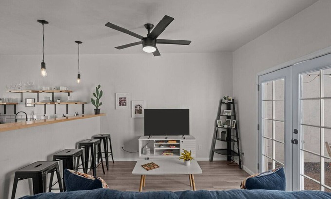 This two bedroom townhome is the perfect retreat for couples or solo travelers looking for a relaxing and luxurious getaway. Located in a quiet and peaceful community, you will have access to all the necessary amenities inside and out of the home and conveniences to make your stay comfortable and enjoyable. The townhome features a walk-in shower and a spacious and bright living area. Enjoy your morning coffee or a glass of wine on the front patio taking in the people watching and downtown lifestyle. The entire unit has been recently renovated and beautifully decorated with modern and elegant furnishings to create a comfortable and inviting atmosphere. From the moment you step in, you will feel at home and ready to relax and unwind in this tranquil setting.