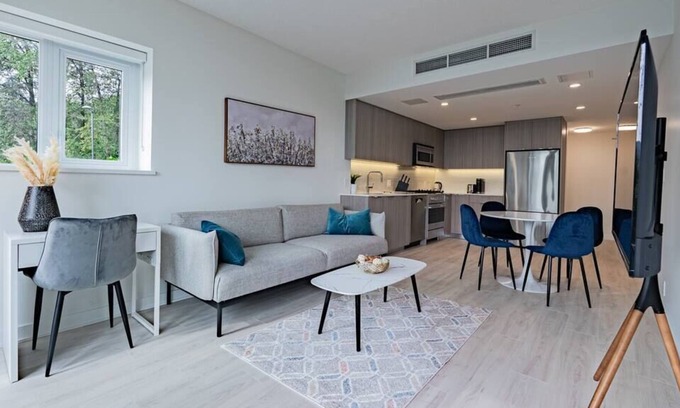 Welcome to our brand new 1-bedroom unit in North Vancouver! Experience the perfect blend of comfort and style in this modern oasis. Relax on the spacious patio. The interior boasts contemporary furnishings, a fully equipped kitchen, and a cozy bedroom with plush bedding. Conveniently located near popular attractions and outdoor activities, this Airbnb is the ideal choice for nature enthusiasts and urban explorers alike. Book now for an unforgettable stay in North Vancouver!