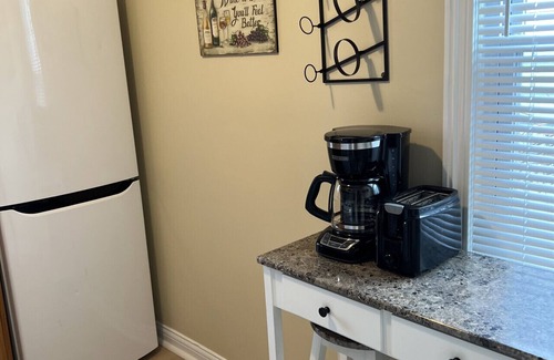 Kitchen: Electric stove/oven | Refrigerator | Microwave | Toaster | Drip style coffee pot | Cooking basics | Dishware & flatware | Pots & pans