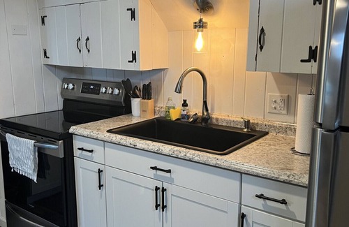 Kitchen: Stainless electric stove/oven | Refrigerator | Microwave | Dishwasher | Toaster | Drip style coffee pot | Cooking basics | Dishware & flatware | Pots & pans