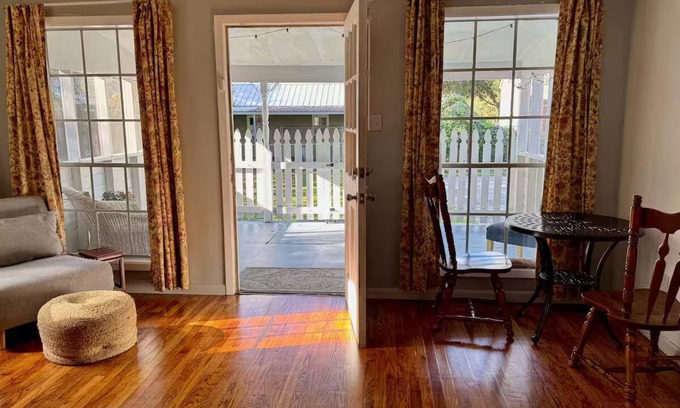 Enjoy the simplicity of this peaceful cottage with access to the common areas of the main house, filled with 120 years of history. In addition, the gardens feature a patio with a table for six, a barbecue grill, and a fire pit for cool evenings.