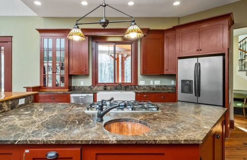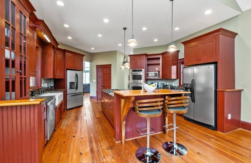 Our 3 floor home in the rolling hills of Nellysford is equiped with 6 bedrooms, 4.5 bathrooms, a fully furnished basement game room, fireplaces, 14 acres of private grounds, an outdoor firepit, a chef's gourmet kitchen and so much more!