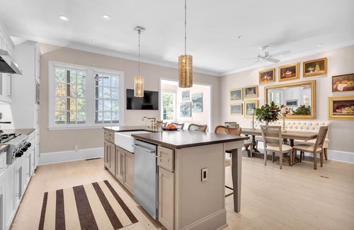 Located on a quiet, tree-lined street in Serenbe, close to the dog park and recreational fields/tennis/pickleball courts, our 3-story townhouse offers all the amenities for year-round comfortable living. Open kitchen, dining, seating area offers easy living space. Beautiful living room with 10 foot-high ceilings and floor-to-ceiling windows with a fireplace provides a gracious yet cozy gathering spot.