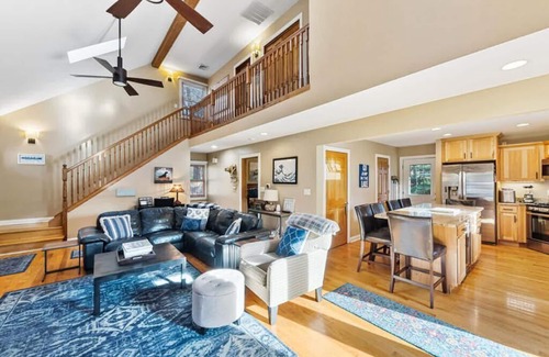 Step outside to enjoy the private fire pit, 6-person hot tub, and spacious deck with a grill and patio seating—perfect for unwinding after a day of exploring. The high-end kitchen boasts a large granite island, wine fridge, Keurig, Melitta coffee maker, and blender, ensuring you have everything you need for memorable meals and cocktails.