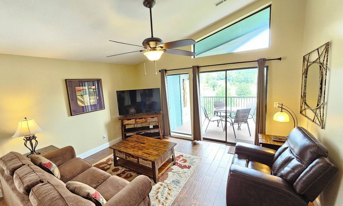 This luxury suite beautifully overlooks the Thousand Hills Golf Course right in the heart of Branson! It also has one of the most breathtaking views in Branson from its large balcony! Located within the Greens at Thousand Hills Resort and just off 76 Country Blvd. (the Main Strip), 10 minutes to Silver Dollar City, 5 minutes to the Branson Landing, and just two blocks from the Aquarium at the Boardwalk! It has been fully remodeled with all new flooring, granite countertops, stainless-steel appliances, hardware, and new furniture from Nebraska Furniture Mart!
