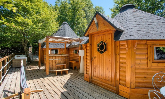 Grand Kota with Private Nordic Bath – Cozy Cabin, Grill & Breakfast Included is located in Saint-Cybranet. Grand Kota with Private Nordic Bath – Cozy Cabin, Grill & Breakfast Included provides accommodation, featuring Air Conditioner, Pool, Security/Safety, among other amenities. This House features Air Conditioner, Pool, Security/Safety, to make your stay a comfortable one.