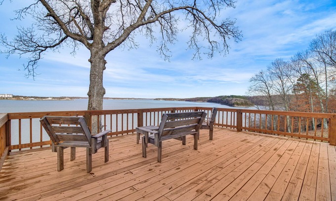 Nestled in the charming town of Jay, Oklahoma, this 2-bedroom, 2-bath vacation rental is a great option for families or friends seeking relaxation and adventure. Enjoy your morning coffee in serenity on the deck overlooking scenic views of Grand Lake. Then, pay visits to Cherokee Casino Grove to test your luck and Natural Falls State Park for a perfect picnic. With its cozy interior and proximity to top attractions, this home is an ideal choice for your Jay getaway!
