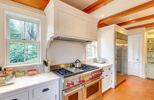 Your ultimate family getaway awaits at 'The Boulders!' Situated on Lake Waramaug, this impressive 9-bedroom, 6.5-bathroom Warren vacation rental home features 7,000 square feet of living space. Have a cookout on the grill, dine with loved ones on the expansive patio, and take in tranquil views of the lake from the fire pit. Later, cast a line off the boat dock or play a match of ping pong! Going out? Take a short drive to the beach and hike through Mount Bushnell State Park.