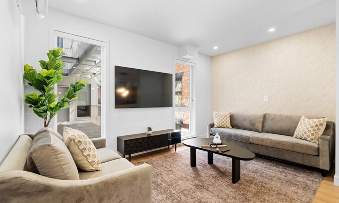 Step into this beautifully designed space, where modern elegance meets cozy comfort. High ceilings enhance the airy feel, creating a welcoming retreat for your stay.
