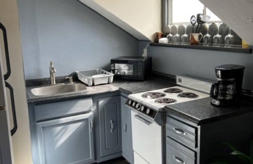 Enjoy all the beauty, history, and convenience of The Grand Old White. This historic building has a two-car garage with a really cool loft apartment above it. It has a queen size bed, dresser, and chest. The living area has a terrific couch/futon positioned directly in front of the 55” flat screen TV. The adjoining eat-in Kitchen has an oven, full size fridge and dishwasher. The bathroom boasts a separate shower and soaking tub. There is also a zone heater in the bathroom for those chilly nights. The high speed WIFI is very reliable as it should be. This delightfully private apartment has amazing hardwood floors and a great view of the Capitol. The private entrance and parking just steps from the door will give you a home feel while staying with us. If you are visiting family, just checking out Charleston or working at the State Capitol (which is only 500 feet from our front door) …...YOU WILL LOVE THIS PLACE.