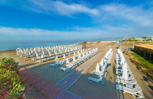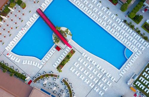 Only 656 feet to its private sandy beach, Grand Park Lara is an all-inclusive hotel with 2 outdoor pools with water slides, a kids pool and spa facilities. It offers air-conditioned rooms with a flat-screen TV and mini-bar. The rooms at Lara Grand Park come with modern furnishings. They all feature a private bathroom with free amenities. A safe is standard. Each unit offers views of the city, garden or the sea. Daily breakfast, lunch and dinner is served in buffet style with dishes from Turkish and international cuisines. You can have pita bread, ice cream and coffee and cake services during the day. The à la carte restaurants serve fish, Chinese and Italian cuisines and BBQ. Spa facilities include a Turkish bath, sauna and fitness room; massage services can also be provided. You can play a game of pool and darts at the property. Free WiFi is available in public areas. The entertainment staff organizes various activities throughout the day. There is also a kids club for kids between 4 and 12 ages. Grand Park Lara is 12 mi from Antalya city center. Free private parking is available on site.