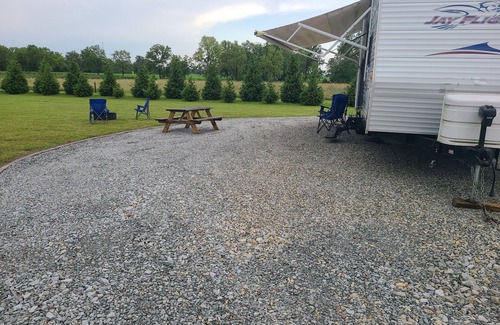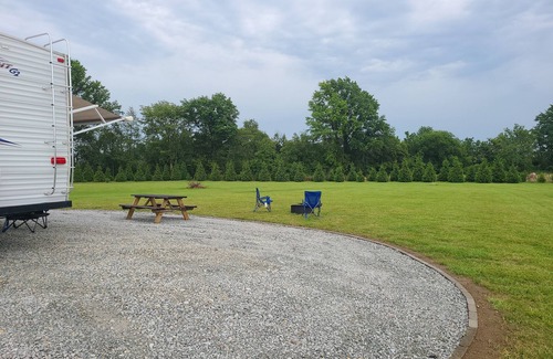 Enjoy full hook-ups (20/30/50amp), a large gravel pad for easy parking and lounging, plus a picnic table and fire pit for cozy evenings. The space is for you—with plenty of room to stretch out, play catch, kick a ball, or just enjoy the quiet.