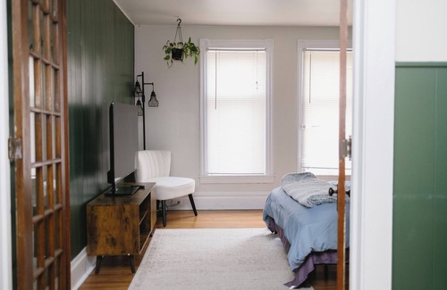 Kick back and relax in this beautiful and serene downtown home. Located in the heart of downtown GR, this space is in walking distance of the medical mile, downtown bars, and all of Grand Rapids’ offerings. Take advantage of a beautiful neighborhood surrounded by countless amenities. Smart TV, kitchen, and appliances included with your stay!