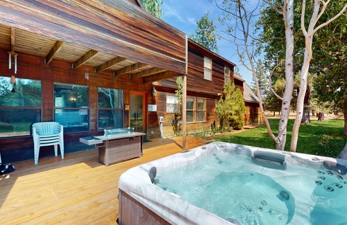 Spend quality time with loved ones at this sprawling Sisters vacation rental, tucked away on a five-acre wooded lot. Take in the fresh air on the upper balcony or enjoy soaking in your own private hot tub.