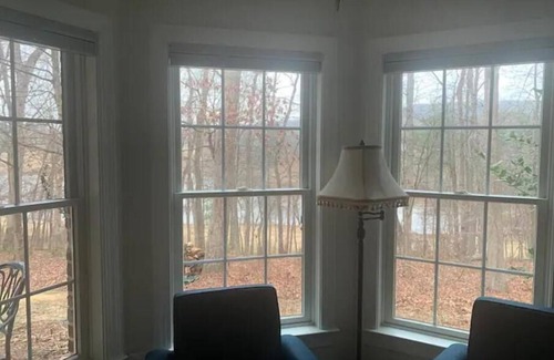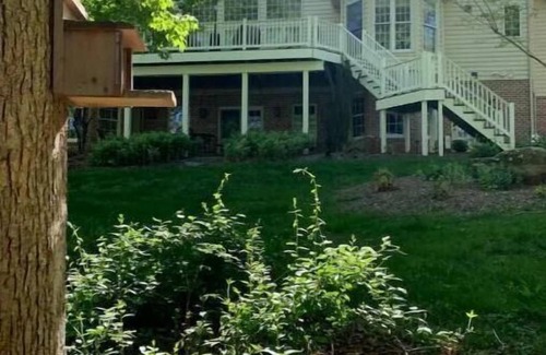 Located in a quiet rural cul-de-sac in Harford County's farming community, this gem sits above a 7-acre lake amongst beautiful, wooded scenery. Grande View 2 is a newly built and furnished bed room, bath, kitchenette, with adjustable King bed, and other amenities. Lake access is a short walk through one of our three wooded trails from the house. Full 365-degree access to the lake for fishing, kayaking and birdwatching is available; a wonderful place to relax.