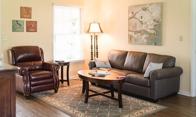 Grandma’s (newly renovated) Cottage is a charming home away from home. The serene country setting is a wonderful escape from the hustle and bustle of city life. It is located just 2 miles from The Barn at Cedar Grove and only 12 minutes from the two towns of Columbia and Greensburg. You’ll find the quaint, country kitchen fully equipped with cooking and serving utensils. It has 4 comfortable bedrooms and a queen sleeper sofa. It has 2 bathrooms and a huge screened porch. Amenities include a washer and dryer, dishwasher, central heat and air, satellite TV and wi-fi.