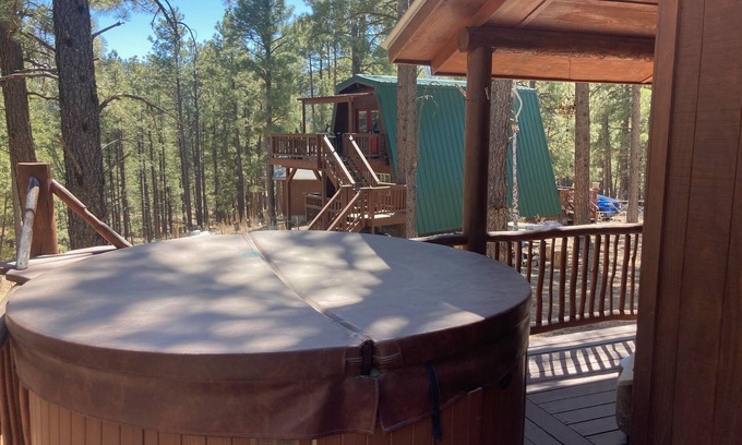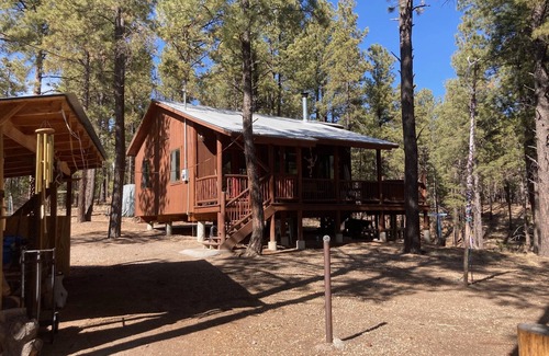 Grandmas Groovy Getaway is located in Jemez Springs. Grandmas Groovy Getaway provides accommodation, featuring Laundry, Security/Safety, Bedding/Linens, among other amenities. This Cabin features Laundry, Security/Safety, Bedding/Linens, to make your stay a comfortable one.