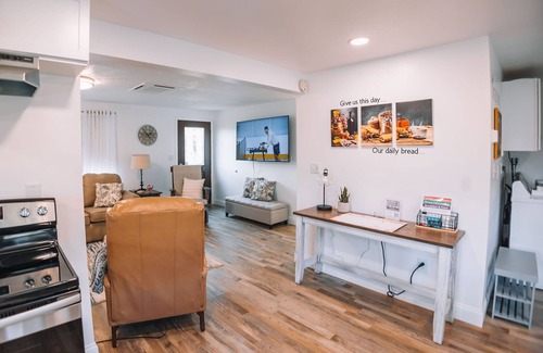 A newly renovated 2 bedroom, 2 bathroom home. Located in a quiet neighborhood within walking distance of all the attractions in downtown Sugarcreek. Conveniently located next to the local farm market, Sweetwater Farms and iconic Swiss Village Bulk Foods. The property has plenty of outdoor space for children and adults with access to outdoor games upon request. With ample outdoor entertainment space, this is the perfect place for your family while you visit Sugarcreek. We provide an assortment of continental breakfast items, contactless check-in and check-out. We are located 8 miles from I-77 and minutes from Walnut Creek, Berlin, Charm and Mt. Hope.