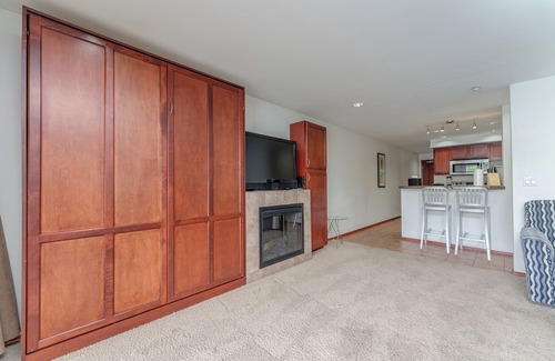 Enjoy a King bed in the private bedroom, a full bath, full kitchen with breakfast bar, indoor and outdoor dining, and a queen sofa-sleeper and Murphy bed in the spacious living room.