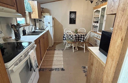 This clean, comfortable home sits on 42 quiet wooded acres with grassy fields that serve as the perfect base camp for lazy lake days or touring the park. Room for six people means the whole family can enjoy a fun getaway together. Master Bedroom and Guest Bedroom each have a queen bed, while the Kid’s Bedroom has two comfy twins (all linens included). Two full bathrooms with tub/shower. House is cooled with two large portable air conditioning units as well as ceiling fans in each bedroom and living room. Central heat keeps the home warm thru the winter. Kitchen is fully equipped with a new range and everything you’ll need. New washer and dryer conveniently available in the home. Smart TV, DVD player, large selection of movies, board games and books – something for everyone in the family.