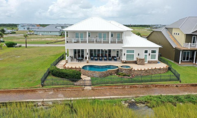 Providing a restaurant, the property also has an infinity pool as well as a hot tub. On clear days, guests can head outside to enjoy the vacation home's outdoor fireplace or simply kick back and relax. Offering direct access to a balcony, the air-conditioned vacation home consists of 1 bedroom. Featuring a terrace with pool views, this vacation home also includes a satellite TV, a well-equipped kitchen with a dishwasher, an oven, and a microwave, as well as 4 bathrooms with a walk-in shower and a hair dryer. There's also a seating area and a fireplace. Guests at Grateful and Graciuos will be able to enjoy activities in and around Rockport, like cycling. A children's playground is also available for guests at the vacation home. Corpus Christi International Airport is 48 miles from the property.