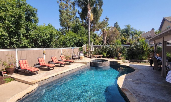 Great backyard with built in BBQ and private pool and spa is located in Corona. Great backyard with built in BBQ and private pool and spa provides accommodation, featuring Wellness Facilities, Fireplace/Heating, Entertainment, among other amenities. This House features Wellness Facilities, Fireplace/Heating, Entertainment, to make your stay a comfortable one.