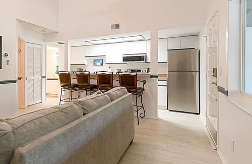 At home, your condo offers smart home capabilities (appliances, lights, and air-conditioning) via a provided Amazon Alexa. The welcoming living area features a large TV with a Bose soundbar, and the well-equipped kitchen showcases a full suite of stainless steel appliances. A private stackable washer/dryer makes cleanup easy after a fun day on the river.