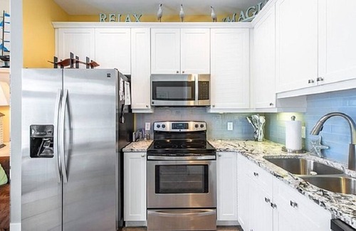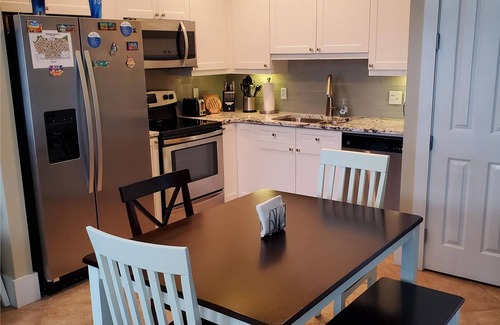 The urge to eat out, especially in this area, is always there while on vacation. Sometimes you just need to make a meal at home. At a minimum you need a place to snack and graze. This kitchen has everything you need to do that and more.