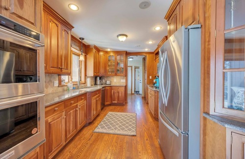 Two-story 6 bedroom, 3.5 bathroom large house with 2 acres of land. The home is configured for optimal use for families and is completely private on a secluded private street. Features a large deck and field. There is an outdoor fire pit and indoor wood burning stove for the cozy winter months.