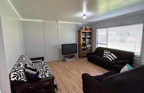 This is a family owned bach that we have decided to share with others who might be looking for a well set up property with plenty of room to relax in. It has all the things you need for small groups or a family. The kitchen has a full stove, good sized fridge and small freezer and a few pantry basics. There is tv and a good selection of games or books to keep you entertained.