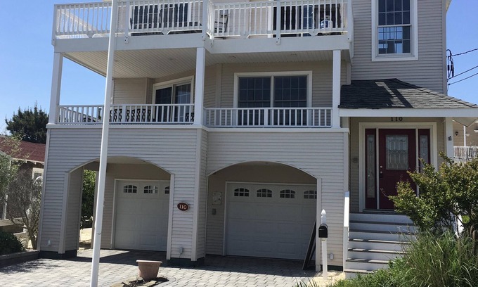 This reversed living home is just steps away from the beach. Fully furnished 2100 square foot house is on a ocean block of Ship Bottom on LBI. Family friendly. The house sleeps 10 people easily.The four bedrooms will sleep up to 9 people. 1 additional can sleep on a full size pull out sofa in the family room. You have a fully equipped kitchen along with coffee maker, blender, toaster and convection/microwave oven. To make it easier there's an indoor washer and dryer located on the first floor.