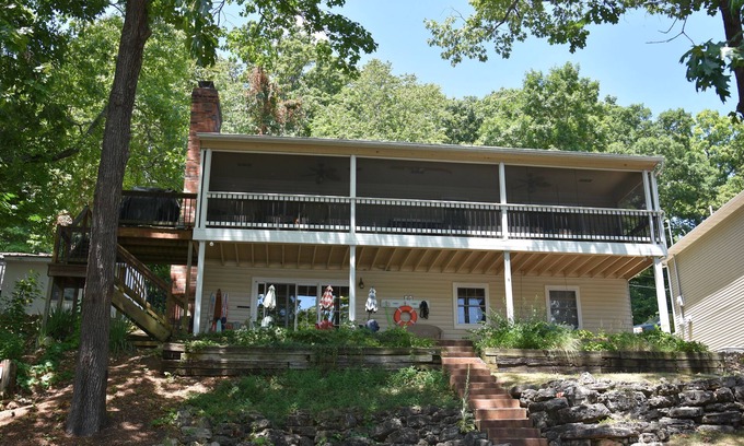 Great family retreat! Lakefront, 4bed/2Ba, quiet cove & private dock is located in Osage Beach. Great family retreat! Lakefront, 4bed/2Ba, quiet cove & private dock provides accommodation, featuring Laundry, View, Balcony/Terrace, among other amenities. This House features Laundry, View, Balcony/Terrace, to make your stay a comfortable one.