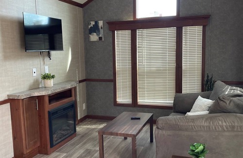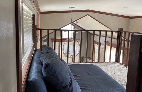 Great Getaway at Cherokee Landing is waiting for you at this cozy 1-bedroom cabin/tiny home. The bedroom features a comfortable queen bed, perfect for a good night's sleep. With amenities like AC, heating, and WiFi, guests will feel right at home. The bathroom includes a hairdryer for added convenience. Plus, there's an additional living room space up in the loft area with a futon and dorm bed for relaxation. Fall in love with Lakeview and enjoy the magic it has to offer.