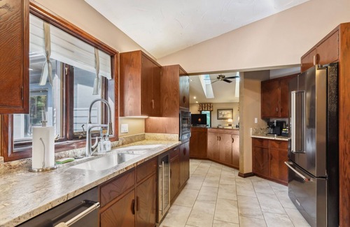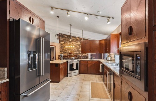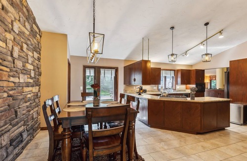 With three floors, two upstairs wings, multiple game rooms, + an outdoor oasis, this 80's home with modern renovations is the epitome of a group getaway retreat, sleeping 16! Whether you're at the basement bar playing pop-a-shot/air hockey/ping-pong, at the upstairs bar in the billiard room playing pool, sitting by the firepit, or lounging on a comfy bed or couch, you're guaranteed to be relaxed and having fun!