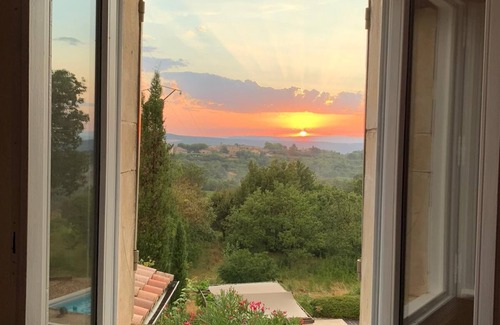 Our vacation home is a perfect place for families and smaller groups. Terrace and pool offer absolute privacy and a wonderful view. Sundowner on the terrace, that is pure relaxation for us. The rooms are divided into two wings and thus offer privacy and ample space even in the house. Living room and kitchen and the terrace directly in front of it are the ideal places to spend time together, to chill, to play. Around the heated pool you will find sunbeds with places for shade and sunbathing. From Cigalon (that's how we christened our house...) you can make trips to Avignon, Nimes, Orange as well as trips to the nearby rocks on the Cèze (cliff jumping - if you want), canoe trips on the Ardèche, cycling and hiking tours in the Gard. A trip to the sea is also worthwhile if you want a little more tourist hustle and bustle again (yes, that can be nice too...). In the surrounding villages you will find nice restaurants (e.g. in Goudargues) and of course everything for your daily needs. Our favorite is the small, nice store in St. Marcel de Careiret. Everything there, super close - and vacation shopping too...! What do I mean?? Just try it out...;-).