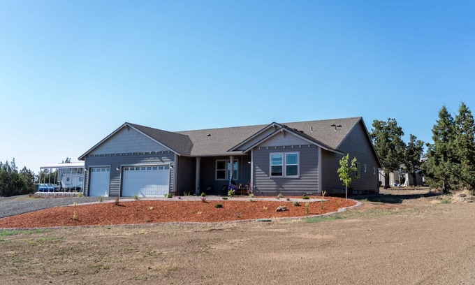 With over 2 acres you can bring all of your toys and loved ones. Only 6 miles from Bend and 7 miles to Redmond, you can enjoy the town and then come escape under the stars. Fur babies are welcomed, just let us know they are coming. There is 1 King bed, 2 queen beds, and 2 air mattresses, a twin and a queen.