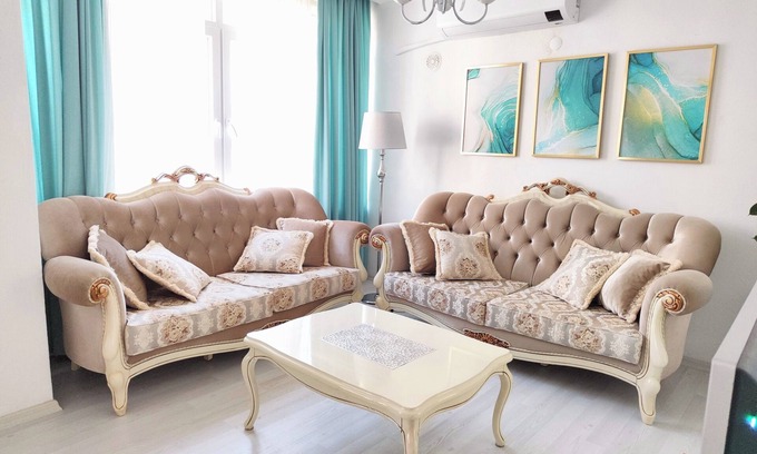 Nestled in Antalya, this delightful apartment offers two bedrooms - one with a queen bed and the other with a twin bed. With two bathrooms equipped with amenities like a hair dryer and bidet and a washing machine, you will feel right at home. The living room has a TV area with two sofas and a big smart TV with Netflix. In a spacious dining area 6 people can comfortably sit. Make your holiday one for the books with a stay at our place.