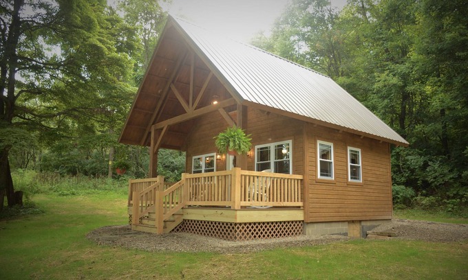 This micro-cabin is yours to enjoy. Let us tell you about how it came to be. Our family has purchased and resold several properties. We were demolishing the old single wide trailer that stood among the giant poplar, cherry, sycamore and oak trees, and the oftener we came to work here, the less we wanted to sell it.