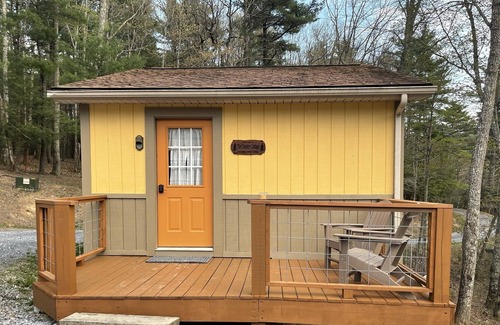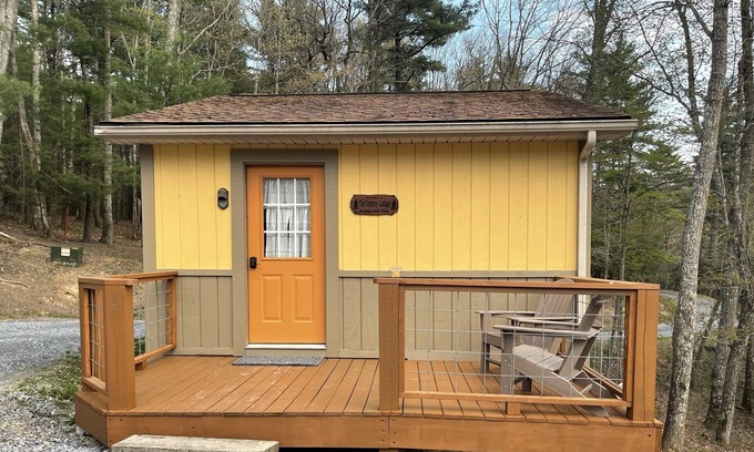 Take me home to The Country Cottage! The adorable studio cottage is a perfect spot to relax. You'll find all the comforts of home. The kitchen is brand new, fully equipped with pots and pans, cooking essentials, a coffee maker, and more! There is a super comfortable Queen over Queen bunk bed and a single sleeper sofa. Perfect for couples, or a small family, this cottage features an open-concept living space with a warm and cozy feeling. Just outside is a deck to enjoy your morning coffee and a fire pit for the cool mountain evenings.,