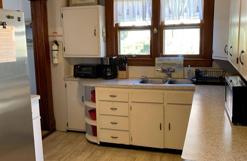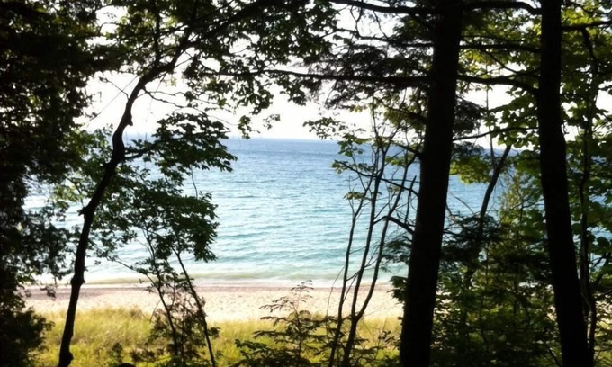 Quaint cottage from the early 1900's with in Lovely front porch, Living room, & Den with fireplace. Dining room table seats 10. There are 4 bedrooms (1 queen, 1 double, two twins, & one set of bunk beds) -[bunks have a weight limit of 165 pounds each and upper bunk is for ages 6+]. There is ( new in 2019)full size sleeper sofa downstairs. Two bathrooms. One with shower only ( downstairs) and one with tub/shower(upstairs). Highchair & Greco pack n play-(new fall of 2022. )All hardwood floors refinished in fall of 2021 & new carpet upstairs ( winter 2021). Rear deck with picnic table and new gas grill(summer 2020).Large corner lot. A fully equipped/stocked kitchen with stainless steel appliances. Linens & towels included. Clean sheets are left on the foot of each bed . Wifi. & “smart tv” with FUBO streaming service May- Nov1. ( Nov.-May only antennae tv- local stations plus you can access your own Netflix etc.)One block to beach with new playground & restrooms. Close to town, parks, marina ( a splash pad for kids),cafes and art galleries. Enjoy free entertainment at East Park pavilion during the summer. One block to Charlevoix's beautiful library with a playground & free summertime concerts. Take in the fabulous sunsets from the porch! Walk to see the famous “mushroom” houses of Charlevoix. Many are right on our street.