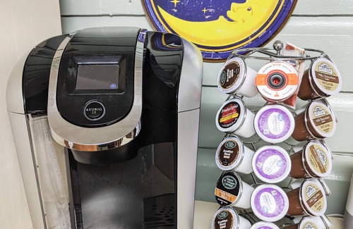 There are multiple options for coffee in the mornings. There is a coffee maker for traditional coffee grounds (medium or coarse) and also a Keurig option for K-Cups. Coffee grounds and K-Cups are not always provided so we recommend bringing your own.