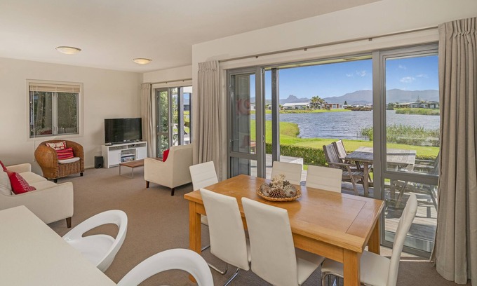 Our perfectly positioned modern villa is well equipped for that relaxing getaway or break on the Coromandel. Located overlooking Matarangi Golf Course's & private lake with two decks, this is a great spot to watch the sun come up with a coffee, wand too finish the evenings as the sun sets across the Coromandel range with a nice glass of something.