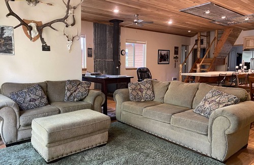Our cabin is in a great area just 5 minutes from the beautiful west shores of Priest Lake and close to the Priest Lake Golf Course and Hills Resort. This is our happy place and recently decided it is time to share it with all of you! It is easily accessible from HWY 57. We have ample parking for multi vehicles as well as boats. The cabin has 3 bedrooms, a loft and can sleep 14 people in beds. We have Starlink WIFI, Smart Roku TV, DVD Players, 2 bathrooms, a laundry unit, a fenced back yard with a deck, and Blackstone grill. Our cabin boasts a great open living room and kitchen that can accommodate any group and it has everything you would expect in a 2700 sq. ft. home. Just out the door or no more than 4 or 5 minutes away you have a hardware store, gas station, grocery store, several quality restaurants, a microbrew pub, boat launch, swimming, fishing, golfing, hiking, ATV trails, lake resorts and countless other points of interest that will fill your stay with activities. We do allow up to 2 dogs so if you are traveling with your furry friends please acknowledge that when reserving as there is a pet fee.